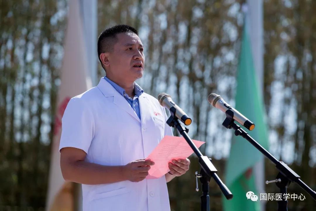 儀式開始,王志峰總經(jīng)理發(fā)表了熱情洋溢的致辭,歡迎來自五湖四海的各位醫(yī)療及醫(yī)療保障工作者們,并祝賀大家成為西安國際醫(yī)學中心的開拓者、創(chuàng)業(yè)者。他表示,經(jīng)過近一年的密集籌備、人員引進,我中心首批員工到崗,其中學科帶頭人和骨干來自全國知名三甲醫(yī)院,可謂人才濟濟,精英薈萃,具備揚帆遠航的實力。全體員工是西安國際醫(yī)學中心建設的基石、發(fā)展的核心動力。合格的國際醫(yī)學人,應該是以至善之心博愛天下,以服務社會積微致遠。秉承讓“患者有尊嚴的生活,醫(yī)者有尊嚴的工作”的價值觀,珍惜機遇,牢記誓言,不忘初心,砥礪前行。匯聚人類生命科學智慧,同步國際頂尖診療水平。為了一個共同的目標凝聚一起,共同“佑護無法衡量的價值”!