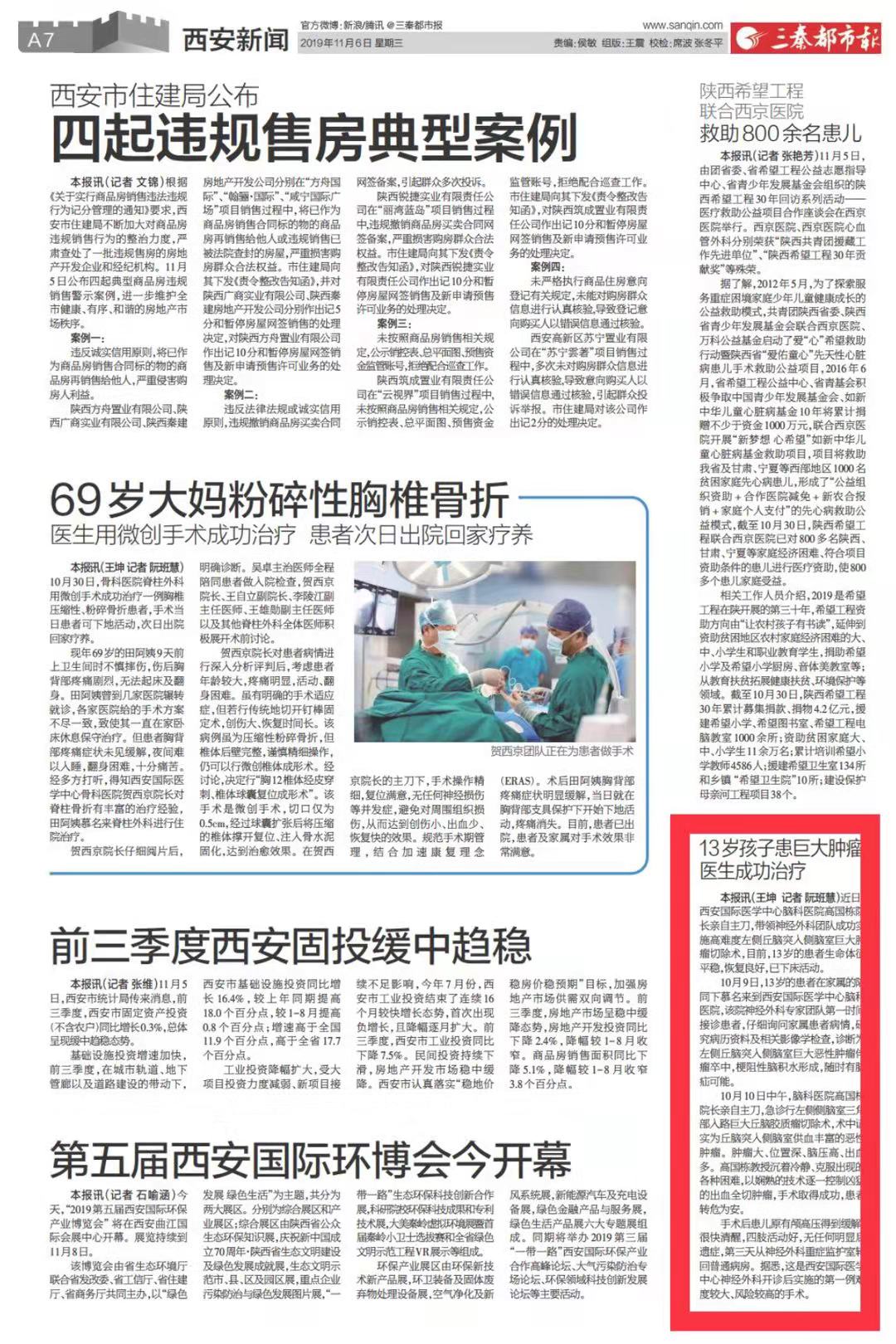 三秦都市報(bào)報(bào)道—13歲孩子患巨大腫瘤 醫(yī)生成功治療。點(diǎn)擊閱讀。