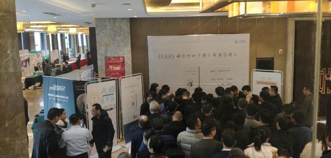 會(huì)上,AME汪道遠(yuǎn)社長(zhǎng)、高國(guó)棟教授、賀世明教授為活動(dòng)揭幕。隨后還舉行了《ERAS神經(jīng)外科手冊(cè)》簽贈(zèng)活動(dòng)。此書是我國(guó)首本將ERAS運(yùn)用于神經(jīng)外科后編著出來的手冊(cè),在場(chǎng)的同仁期望頗高。活動(dòng)一開始,大家排起了長(zhǎng)隊(duì),希望獲得各位專家的親筆簽名。在現(xiàn)場(chǎng),大家就書中熱點(diǎn)展開討論。