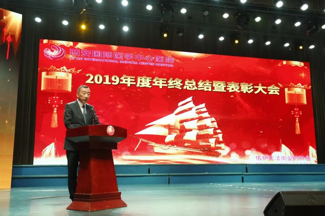 尹強(qiáng)院長做了2019年度總結(jié)表彰大會工作報告。他表示,2019年是西安國際醫(yī)學(xué)中心醫(yī)院的籌劃、建設(shè)之年,也是醫(yī)院起步、開局之年,更是醫(yī)院起航、遠(yuǎn)征之年。在這一年里,醫(yī)院在集團(tuán)的正確領(lǐng)導(dǎo)下,全體員工齊心協(xié)力、眾志成城、拼搏奮進(jìn),克服種種困難,圓滿完成了年度各項任務(wù)。2019年主要工作包括:順利完成開業(yè)籌建;科學(xué)搭建組織架構(gòu);精準(zhǔn)核算人員數(shù)量;廣開渠道引進(jìn)人才;梳理完善制度流程;論證引進(jìn)設(shè)施設(shè)備;組織實施全員培訓(xùn);深入推進(jìn)護(hù)理工作;全力配合系統(tǒng)建設(shè);扎實推進(jìn)JCI認(rèn)證;重點落實感控工作;優(yōu)化細(xì)化診療流程;全面梳理藥品供應(yīng);狠抓宣傳運(yùn)營工作;提升醫(yī)保財務(wù)管理;強(qiáng)化行政后勤管理;有序開展對外合作;順利完成運(yùn)行開診;積極搭建學(xué)術(shù)平臺;出色完成來訪接待。