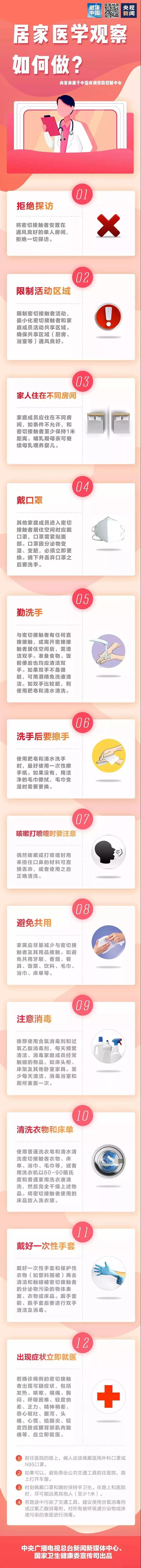 春節(jié)假期即將畫上句號,又一個交通小高峰將到來。多地發(fā)布尋人通告,急尋與確診新型冠狀病毒肺炎患者密切接觸或同乘交通工具的乘客。如果您需要在家留觀隔離14天,請您跟隨下圖了解“居家醫(yī)學(xué)觀察如何做”。