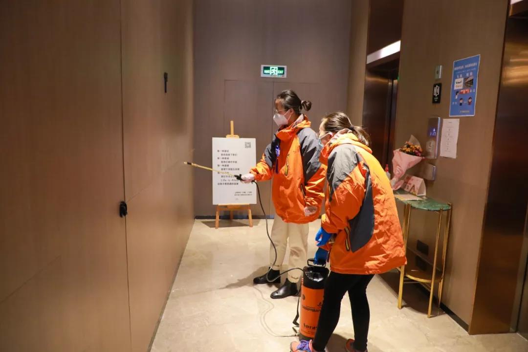 負(fù)責(zé)15層的郭亞麗護(hù)士和搭檔每天要負(fù)責(zé)36人的取餐、發(fā)餐、發(fā)毛巾、收垃圾、丟垃圾,為樓層消毒,拖地……在駐地這幾天,她幾乎沒有時(shí)間休息,連去衛(wèi)生間都是一路小跑。