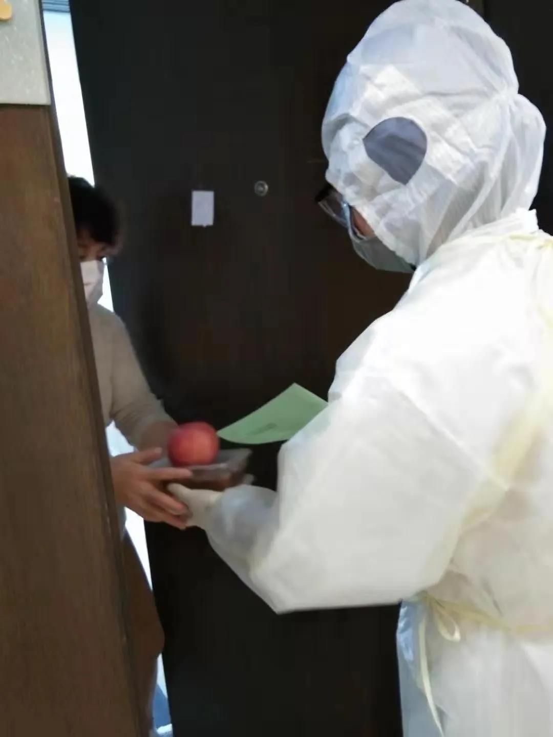 在這里的每一天,“累”是所有醫(yī)務(wù)工作者的共同感受,因為隔離點接受的大都是從武漢回來的人群,所以我們都要做好三級防護的自我保護措施。這里被隔離者都是我們的親人,生活起居,心理輔導(dǎo),事無巨細(xì)都由我們照料。記得剛來的那幾天,穿著不透氣的隔離衣給留觀者送餐時,送到一半時突然感覺自己呼吸不暢,后面的衣服都濕透了,怕自己撐不住,趕快跑到安全通道脫下面罩,解開隔離衣,那一刻好想休息片刻,但是看著箱子里的飯菜,我又重新穿起了隔離衣。我的放松會讓飯菜變涼,家人們吃了會不舒服。想到這里,我邁出堅定的步伐,加入到戰(zhàn)斗中。