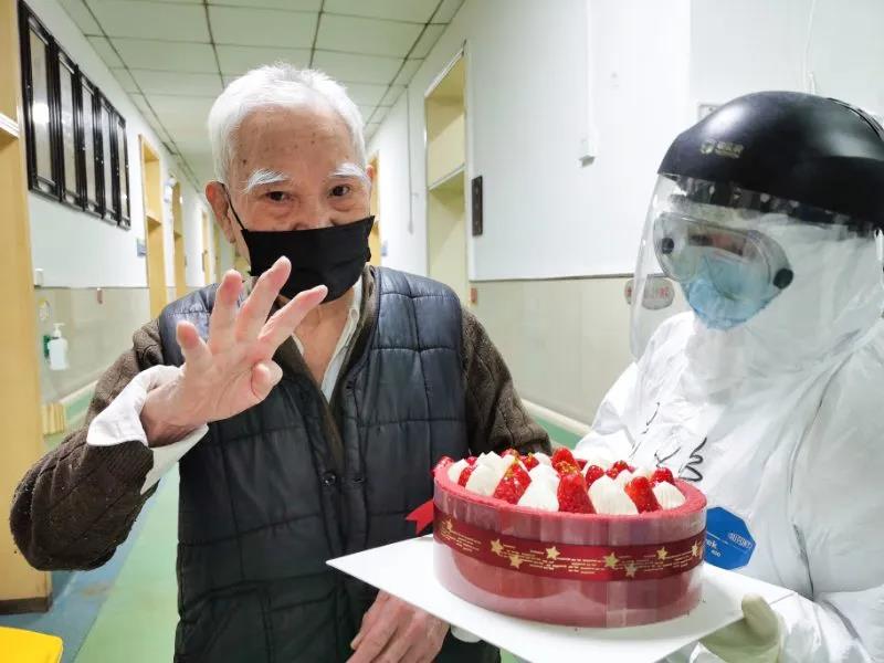 “我年齡大了,活動不方便,如今住進了醫(yī)院,西安國際醫(yī)學(xué)中心醫(yī)院赴湖北醫(yī)療隊隊員像家人一般照顧我,我心里暖暖的!”正在切蛋糕的87歲汪大爺說。