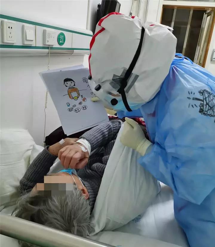 車敏鑫并沒有放棄,依然耐心的用肢體動(dòng)作比劃著、交流著,大致了解奶奶的意思,并給奶奶找來水杯、臉盆等生活用品。夜間奶奶體溫突然升高到38.3℃,車敏鑫邊比劃著給老奶奶喂水,比劃著叮囑老人發(fā)燒期間要多喝水,和老人一同入院的患者告訴車敏鑫這位奶奶從下午到現(xiàn)在一直沒吃飯,醫(yī)院發(fā)的米飯老太太也咬不動(dòng)。聽到這車敏鑫立馬聯(lián)系樓上的兩個(gè)病區(qū)帶來一份粥和一包豆?jié){。有人問她為何這么耐心地照顧奶奶,她總是溫暖的笑著說:“這個(gè)奶奶和我奶奶年紀(jì)差不多大,我是奶奶帶大的孩子,心里就想多幫一幫她。”
