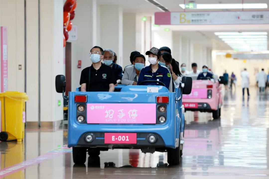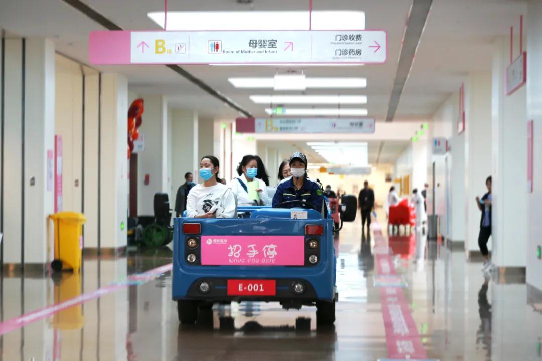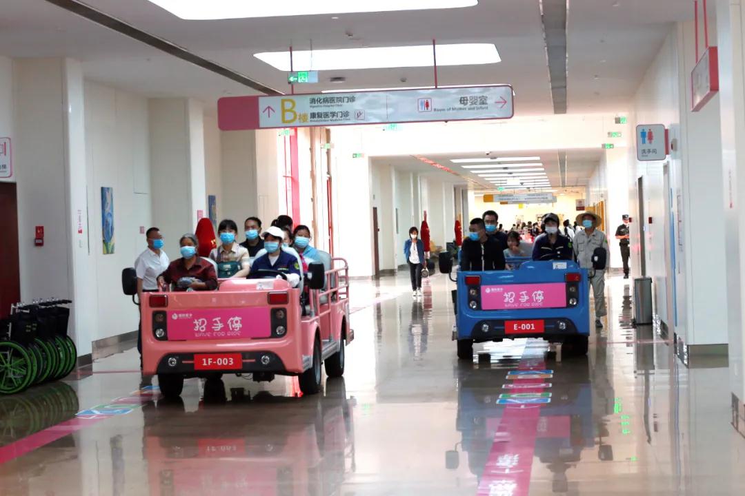 自2019年9月25日開診以來,醫院在門診一二三層都配備了“招手停”電瓶車,免費接送就醫民眾和醫護人員往返于各專科醫院和科室,隨招隨停。