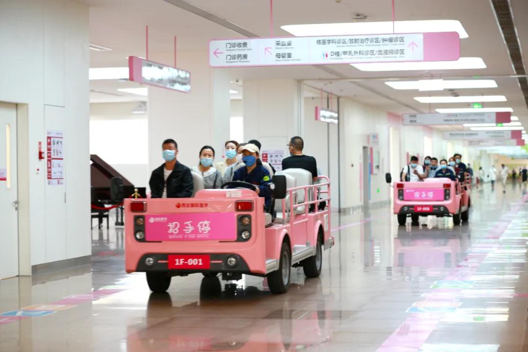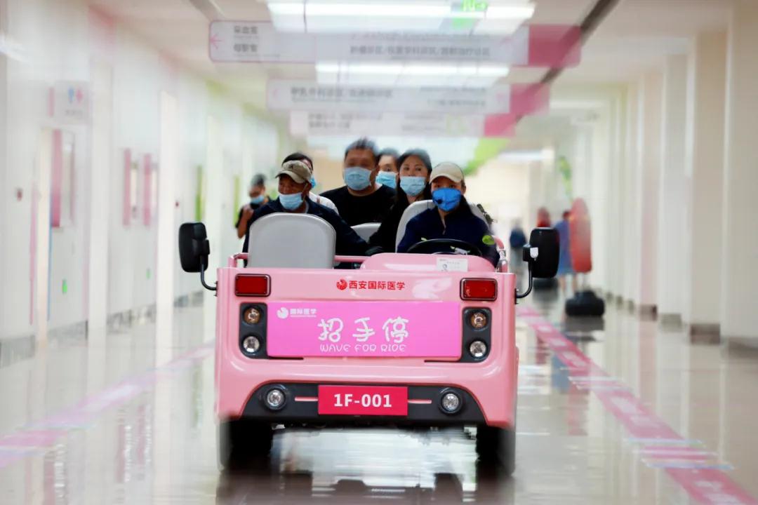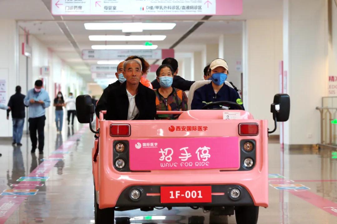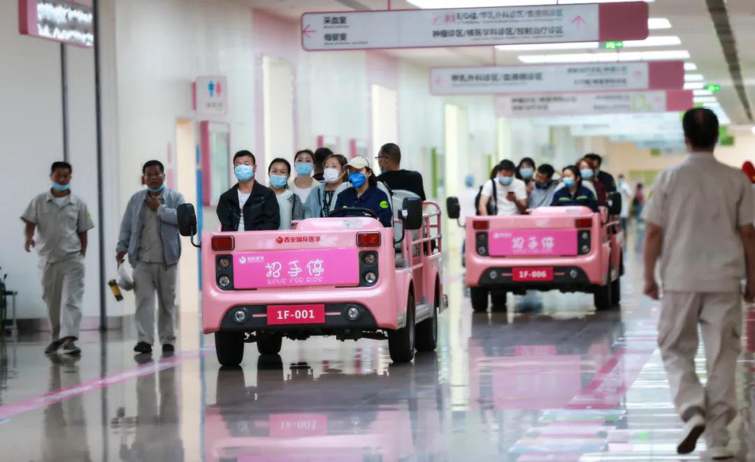 6月8日,在西安國際醫(yī)學中心醫(yī)院醫(yī)療大樓內(nèi),多輛“招手停”電瓶車正穿梭在走廊里,接送患者和醫(yī)護人員。