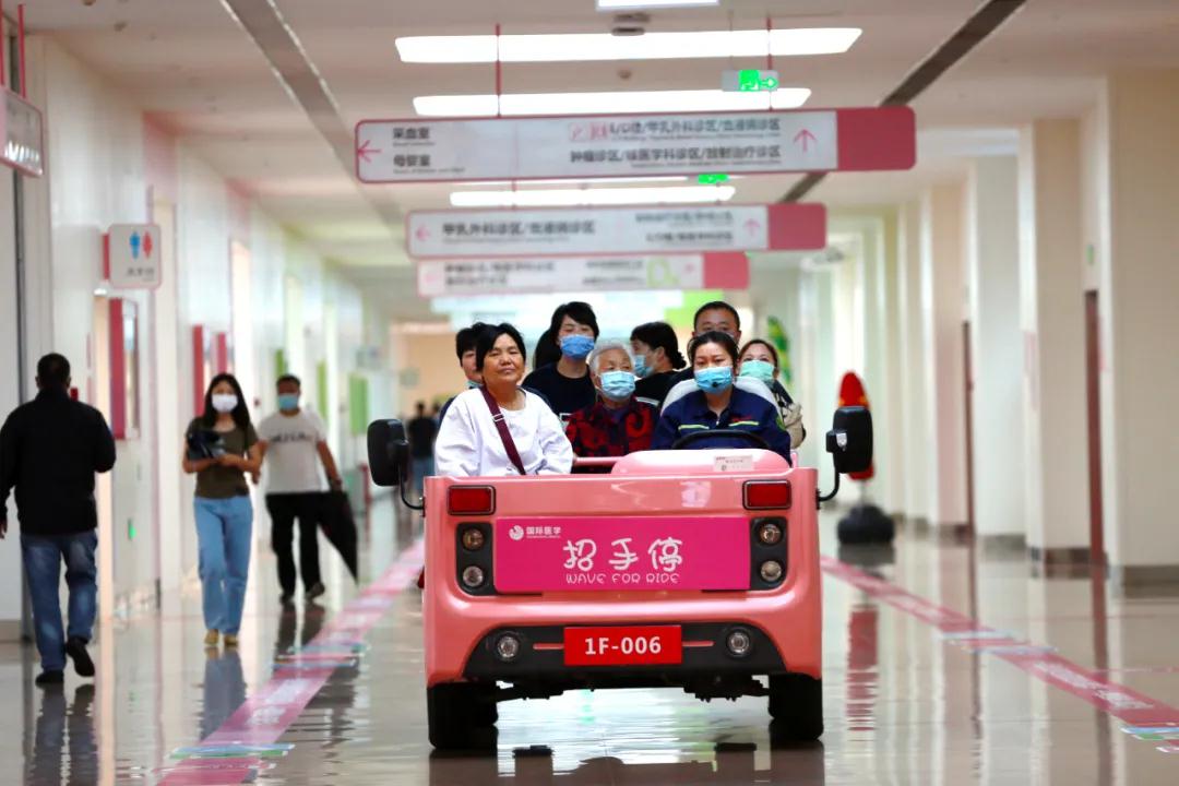 自2019年9月25日開診以來,醫(yī)院在門診一二三層都配備了“招手停”電瓶車,免費接送就醫(yī)民眾和醫(yī)護人員往返于各專科醫(yī)院和科室,隨招隨停。