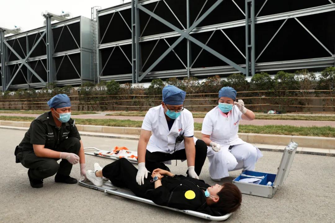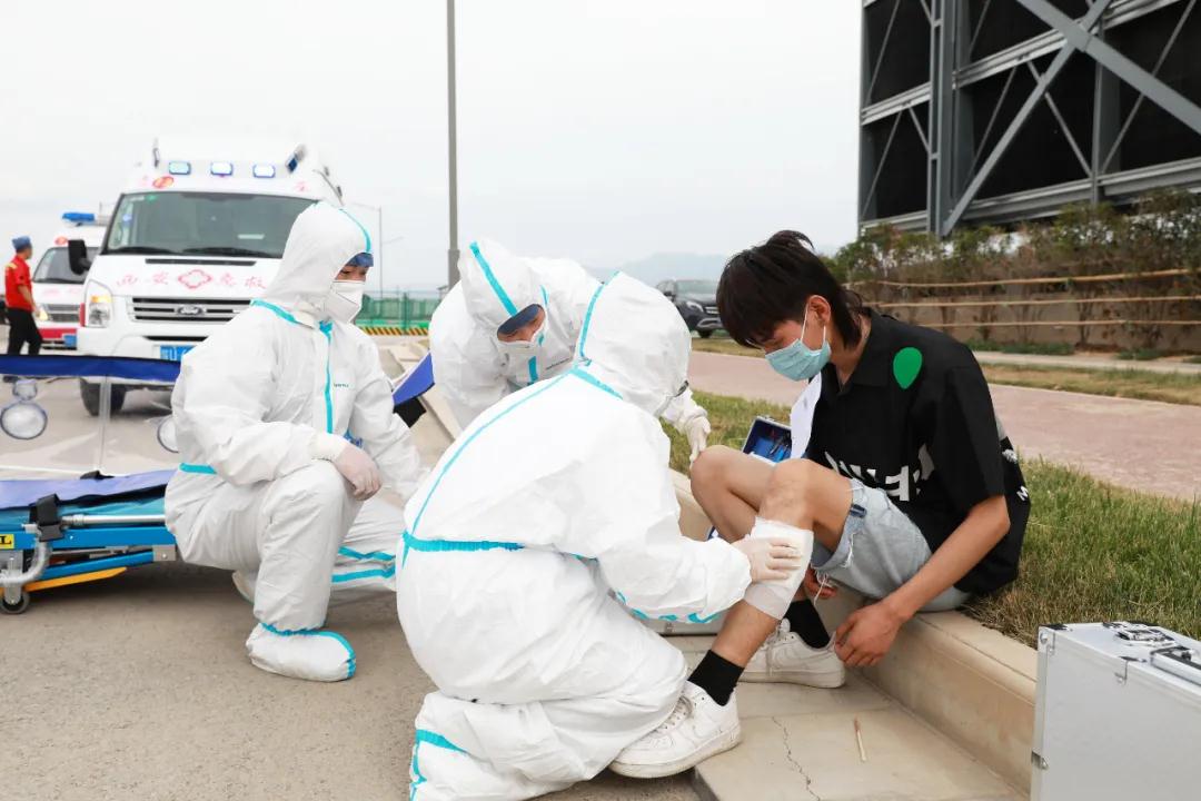 隨后院長尹強(qiáng)通過對講機(jī)發(fā)出演練開始指令。在觀摩組的注視下,一支由22輛急救車及20組醫(yī)、護(hù)、工人員組成的救援隊(duì)立刻趕赴模擬的重大交通事故現(xiàn)場進(jìn)行應(yīng)急救援。