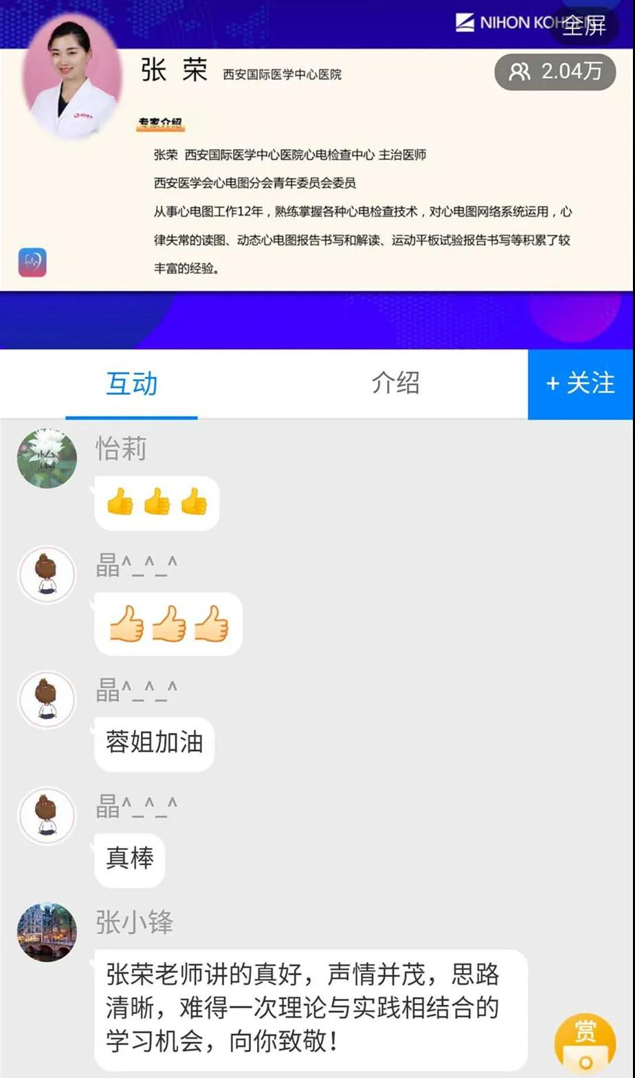 慧聚星光,解讀“心”聲。當(dāng)日下午,“心專家 云論壇——西安國際醫(yī)學(xué)中心醫(yī)院心電講堂專場”如約而至。西安國際醫(yī)學(xué)中心醫(yī)院心電檢查中心主任張錄興、張榮主治醫(yī)師為2萬余名同仁線上直播授課。