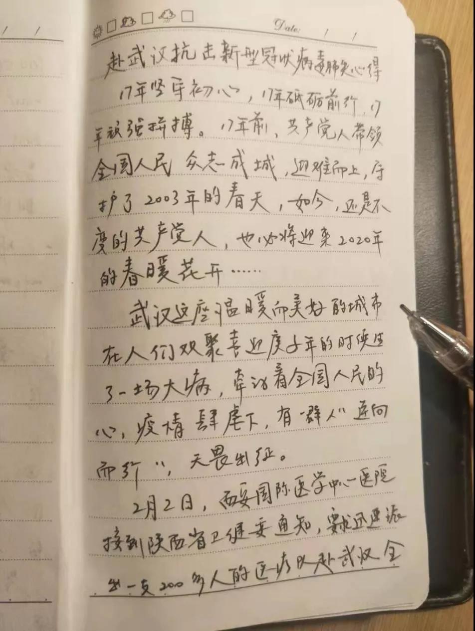 日記的作者李一鳴是西安國際醫(yī)學(xué)中心醫(yī)院消化內(nèi)科三病區(qū)的主治醫(yī)師,也是赴武漢醫(yī)療隊成員。提及初心,他在日記中寫到,不論是作為一名醫(yī)者、一名黨員還是一名中華人民共和國公民,他都責(zé)無旁貸應(yīng)該奔赴抗擊疫情的最前線,于是他在得知將要組織支援武漢的醫(yī)療隊后第一時間報名。