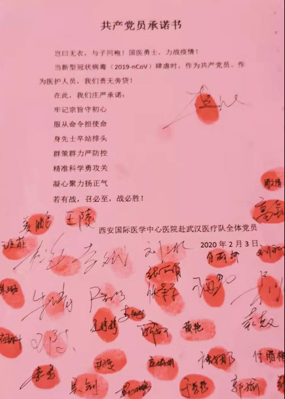 2月3日,西安國(guó)際醫(yī)學(xué)中心醫(yī)院赴武漢醫(yī)療隊(duì)抗擊新型冠狀病毒感染的肺炎承諾踐諾書(shū)一經(jīng)發(fā)布,又有一批批醫(yī)護(hù)人員紛紛遞交請(qǐng)戰(zhàn)書(shū)、入黨申請(qǐng)書(shū)。