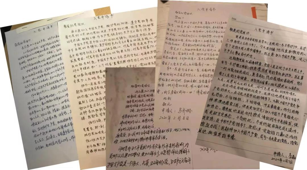 在武漢第八醫(yī)院有46名同志遞交了入黨申請(qǐng)書(shū),在武漢協(xié)和醫(yī)院西院有5名同志遞交了入黨申請(qǐng)書(shū)。