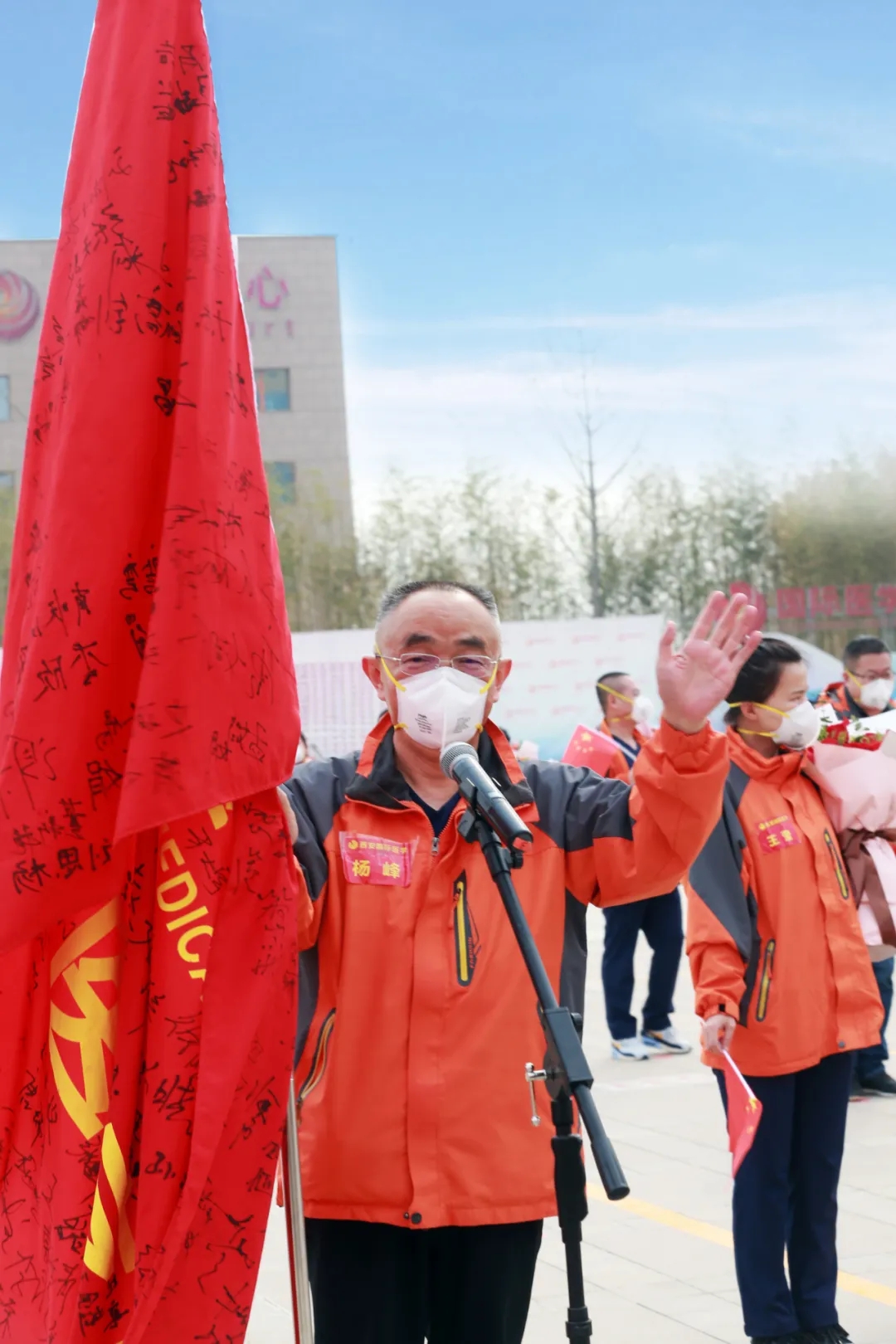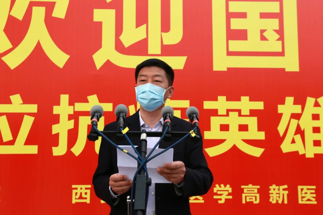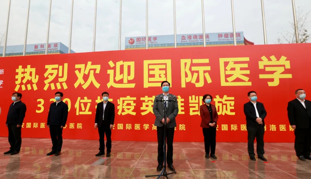 “歡迎回家!”在西安國際醫(yī)學(xué)中心的萬人廣場,陜西省副省長趙剛,國務(wù)院應(yīng)對(duì)新冠肺炎疫情聯(lián)防聯(lián)控機(jī)制綜合組第十二工作指導(dǎo)組組長、國家衛(wèi)健委人才中心主任、黨委書記張俊華,省衛(wèi)健委書記劉勤社,省衛(wèi)健委主任劉寶琴,省衛(wèi)健委副主任、省保健局局長趙嵐,省衛(wèi)健委副主任劉嶺,西安市委常委、高新技術(shù)開發(fā)區(qū)黨工委書記、西安民用航天產(chǎn)業(yè)基地黨工委書記鐘洪江,國際醫(yī)學(xué)董事長史今、總裁劉瑞軒、副總裁孫文國、西安國際醫(yī)學(xué)中心醫(yī)院院長尹強(qiáng)等出席歡迎儀式,向醫(yī)療隊(duì)表示親切的問候,并向他們無畏生死、奮戰(zhàn)一線的精神致敬!