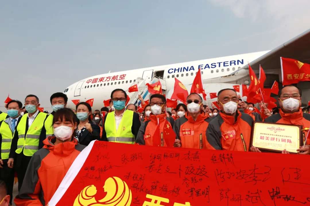 不負(fù)韶華戰(zhàn)疫情,春滿華夏迎君歸。西安國際醫(yī)學(xué)中心醫(yī)院支援湖北醫(yī)療隊(duì)225名醫(yī)護(hù)人員圓滿完成救援任務(wù),由“凱旋門”登機(jī),搭乘“勝利號(hào)”,于3月24日抵達(dá)西安。西安國際醫(yī)學(xué)中心醫(yī)院還有張欣、李晶、申歡歡、張波、馬喬璐、商江麗等6名隊(duì)員仍奮戰(zhàn)在武漢協(xié)和醫(yī)院西院。