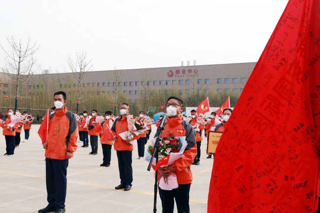 張俊華書記向醫(yī)療隊(duì)的凱旋歸來表示熱烈歡迎,并對(duì)戰(zhàn)疫勇士們?yōu)榱藝摇⒑保嵝〖覟榇蠹遥瑘A滿完成臨床一線的救治任務(wù)表示感謝。