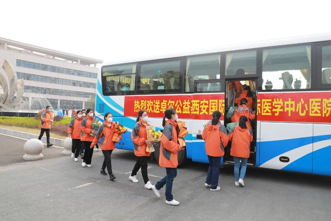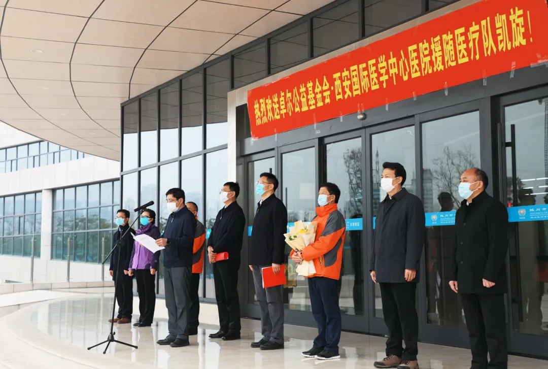 陳瑞峰書記代表隨州市委、市政府,代表258萬隨州人民,向醫(yī)療隊全體隊員表示最衷心的感謝和最崇高的敬意!他說,危難之時見真情,在隨州疫情防控最吃勁的關鍵階段,西安國際醫(yī)學中心醫(yī)院援隨醫(yī)療隊義無反顧的堅定逆行,同隨州人民風雨同舟,日夜鏖戰(zhàn)在疫情防控第一線,托起了無數(shù)生命的希望,傳遞著人性光輝和社會大愛,充分展現(xiàn)了“敬佑生命、救死扶傷、甘于奉獻、大愛無疆”的醫(yī)者仁心,你們是最美的天使,是真正的英雄,是新時代最可愛的人,為保障隨州人民生命安全和身體健康作出了重要貢獻。經(jīng)過艱苦努力,隨州疫情防控形勢發(fā)生積極向好變化,但不獲全勝決不輕言成功。我們堅信,有以習近平同志為核心的黨中央堅強領導,有中國特色社會主義制度優(yōu)勢,有卓爾控股集團和西安國際醫(yī)學中心醫(yī)院的大力支持,有全市人民眾志成城、同舟共濟,一定能夠不斷鞏固成果、擴大戰(zhàn)果,奪取疫情防控人民戰(zhàn)爭、總體戰(zhàn)、阻擊戰(zhàn)的全勝完勝,一定會迎來一個繁花似錦的春天。誠摯地邀請大家常回隨州,隨州永遠是你們的家,隨州人民永遠把你們當恩人、當親人!