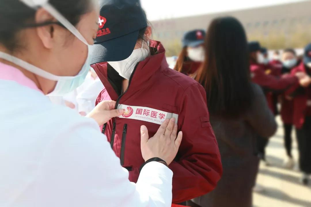 “每一次集結(jié)號(hào)吹響,你們都奮勇向前,在疫情面前無私奉獻(xiàn)、敢于擔(dān)當(dāng),正是因?yàn)槲覀冇写髳邸?guó)際醫(yī)學(xué)人時(shí)時(shí)刻刻都不忘初心、牢記使命,用行動(dòng)踐行我們的誓言:施天使之愛,佑百姓健康!”董事長(zhǎng)史今在儀式上向出征隊(duì)員致敬并叮囑隊(duì)員們一定要保護(hù)好自己,“零感染、高質(zhì)量、共克時(shí)艱,出色完成患者的救治任務(wù)。你們帶去的是陜西人民對(duì)武漢人民的深情厚誼,要讓黨旗在一線高高飄揚(yáng)!和武漢人民一起共度難關(guān)!”