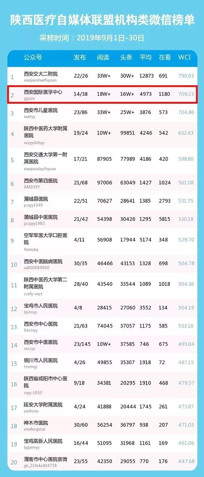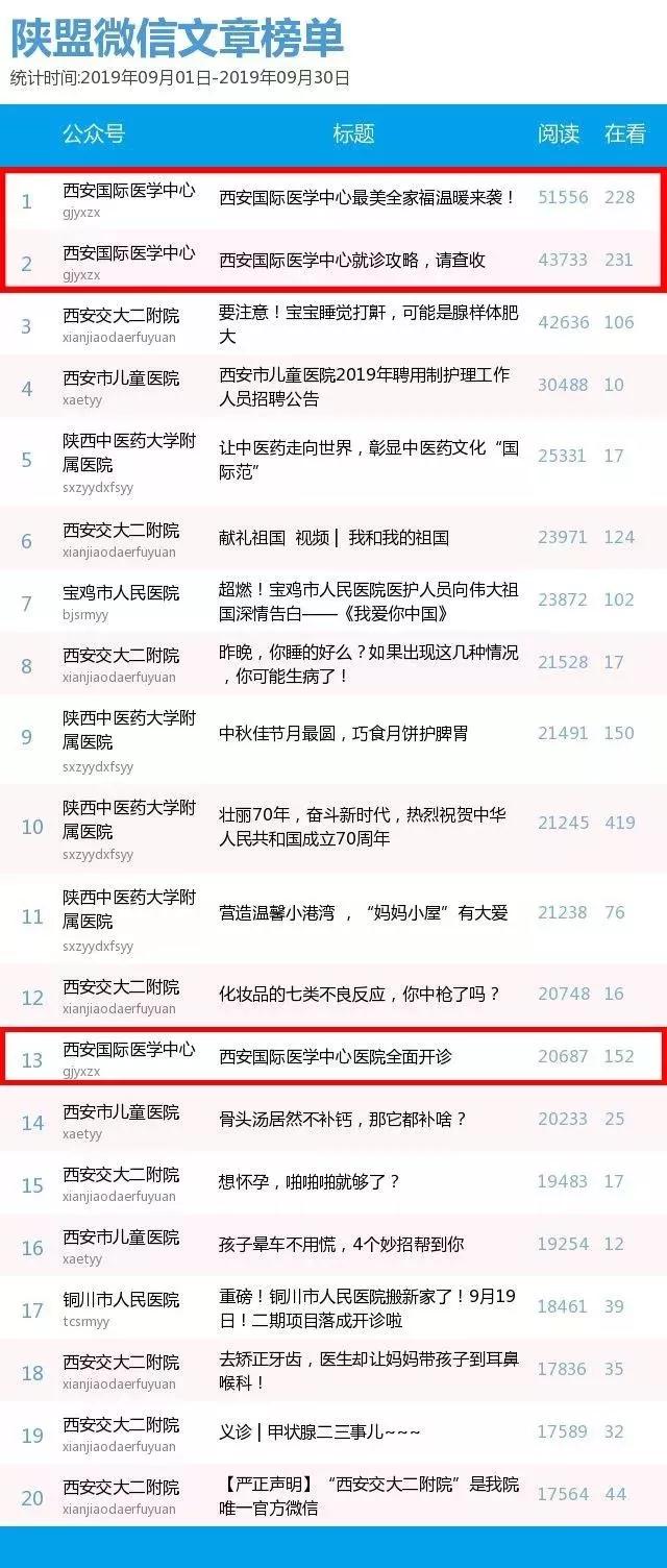 陜西醫(yī)療自媒體聯(lián)盟9月份機構(gòu)類微信榜單