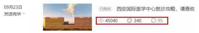 西安國際醫(yī)學(xué)中心開業(yè)以來,得到社會各界的廣泛支持與認(rèn)可,新華網(wǎng)、人民網(wǎng)、央廣網(wǎng)、中國新聞社、健康時報、人民日報海外網(wǎng)、陜西日報、陜西人民廣播電臺、西安日報、西安晚報、華商報、西部網(wǎng)、新浪、搜狐、今日頭條、榮耀西安等各大主流媒體、融媒體走進西安國際醫(yī)學(xué)中心,進行了一輪又一輪的的報道,獲得數(shù)萬網(wǎng)友點贊、熱評。同時,西安國際醫(yī)學(xué)中心微信公眾號屢次榮獲陜西醫(yī)療自媒體聯(lián)盟醫(yī)療機構(gòu)類榜單第2名,“狀元文”《西安國際醫(yī)學(xué)中心就診攻略,請查收》獲得了45040的閱讀量,榮登榜首。位列第二的《西安國際醫(yī)學(xué)中心最美全家福溫暖來襲!》更獲得52821的閱讀量。僅“十一”假期7天,西安國際醫(yī)學(xué)中心微信公眾號粉絲數(shù)新增10261人!