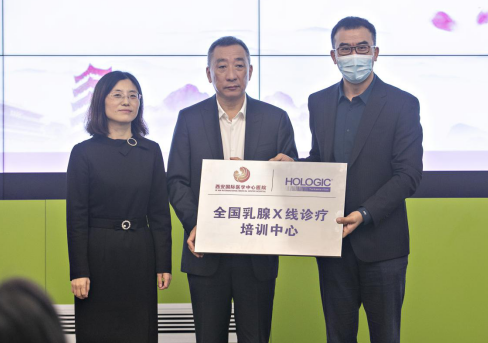 會(huì)議第一項(xiàng),豪洛捷公司為西安國(guó)際醫(yī)學(xué)中心醫(yī)院影像診療中心進(jìn)行了授牌,宣布影像診療中心成為全國(guó)乳腺X線診療培訓(xùn)中心,將為培養(yǎng)乳腺X線診療人員建立開(kāi)放學(xué)習(xí)的平臺(tái)。