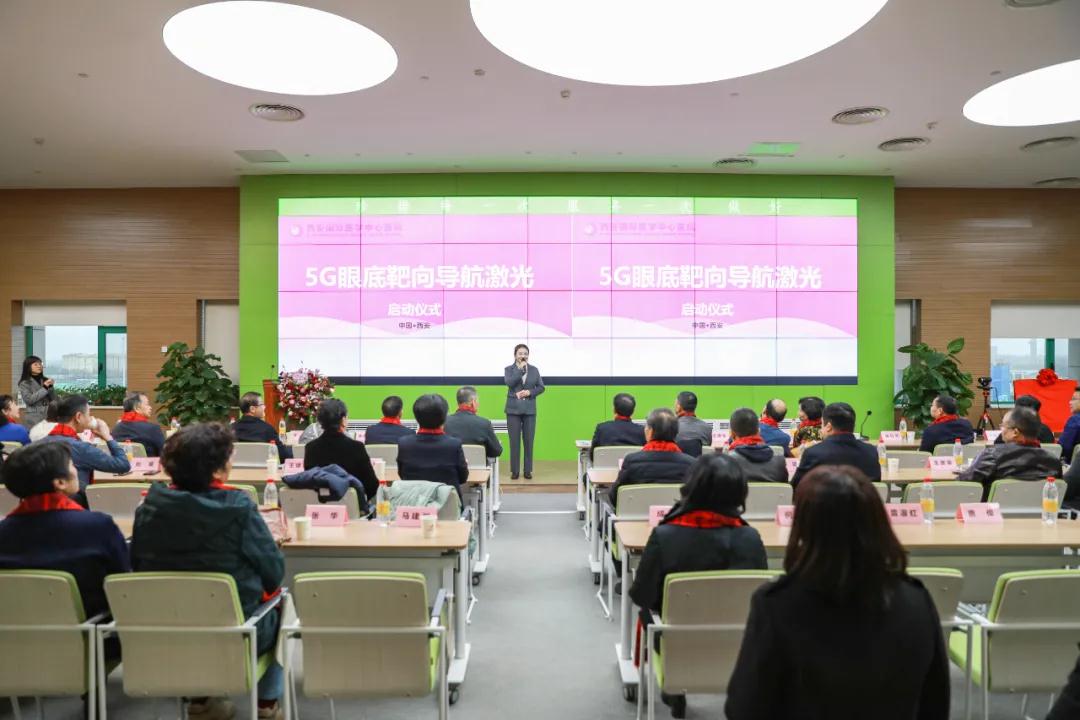 尹強(qiáng)院長、陳有信教授、嚴(yán)宏教授、王從毅教授、倪偉主任、朱琰經(jīng)理共同啟動“5G眼底導(dǎo)航激光”光球;陳有信教授、倪偉主任為“北京協(xié)和醫(yī)院與西安國際醫(yī)學(xué)中心醫(yī)院眼底靶向?qū)Ш郊す膺h(yuǎn)程診療協(xié)作醫(yī)院”共同揭牌。