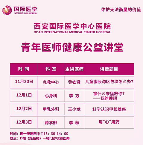 西安國際醫(yī)學(xué)中心醫(yī)院—青年醫(yī)師健康公益講堂預(yù)告