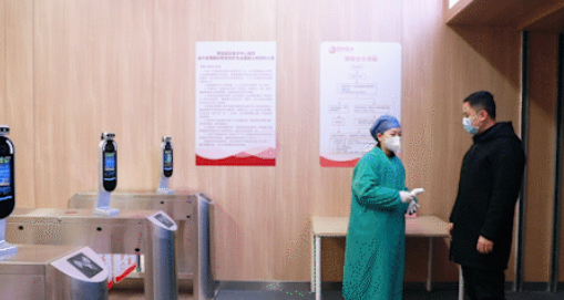 在地鐵閘機口,西安國際醫(yī)學中心醫(yī)院設立預檢通道,醫(yī)務人員為所有進入院區(qū)人員測量體溫,并查驗“一碼通”。健康碼為綠碼、體溫<37.3℃且無流行學史的方可進入,若體溫≥ 37.3℃、有呼吸道癥狀或流行病學史、健康碼為黃色或紅色的人員由預檢醫(yī)務人員登記完成后帶至發(fā)熱門診。
