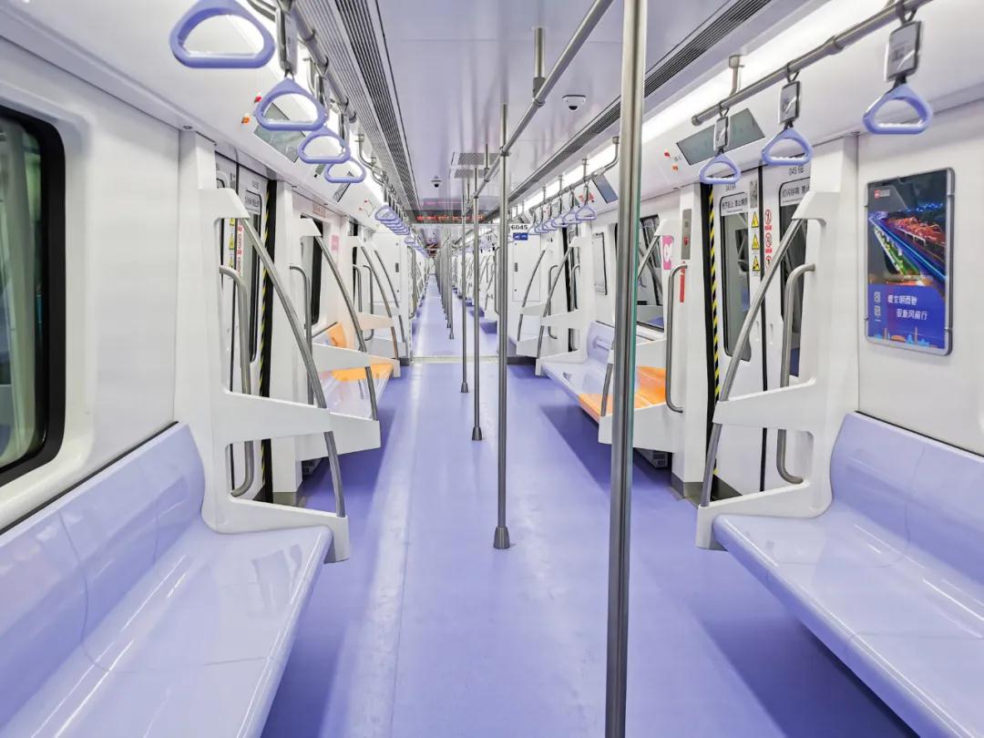 28日上午,小編乘坐開往西安國際醫(yī)學(xué)中心方向的6號線地鐵。該車車身腰線為一抹清新“星空藍(lán)”,車內(nèi)裝飾為點(diǎn)點(diǎn)淡雅“香芋紫”;車門上方的LCD顯示屏,既有整體線路、運(yùn)行狀態(tài)等基本信息,也有列車抵達(dá)下一站的預(yù)計(jì)時間,更有站臺層扶梯、直梯與洗手間的位置等便民信息;橙黃色的愛心座椅自帶加熱功能,科技感十足,有顏值,更便捷!