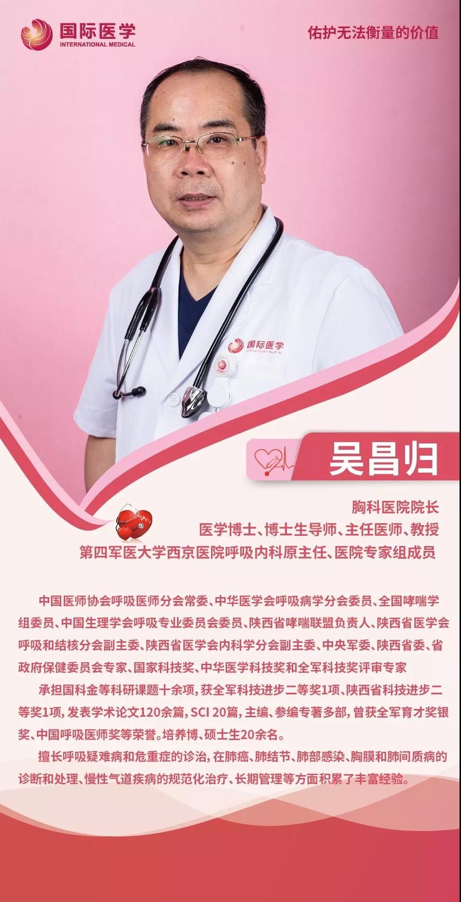 2019年,結(jié)束了在西京醫(yī)院29年的軍醫(yī)生涯的吳昌歸,來到西安國(guó)際醫(yī)學(xué)中心醫(yī)院,出任胸科醫(yī)院院長(zhǎng)。吳昌歸一開始就將自己的工作安排的滿滿當(dāng)當(dāng),每周四個(gè)半天門診,三個(gè)半天查房,患者依舊是他工作的中心。