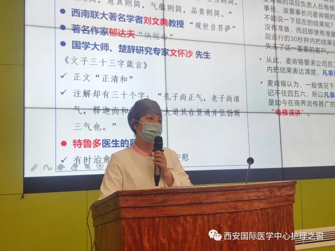 王汝娜總護士長分享了“怎樣做一名優(yōu)秀的護士長”,從護士長應(yīng)該具備的9個方面的素質(zhì)及護士長怎么實施管理等方面提出了許多真知灼見,讓護士長們備受啟發(fā),受益匪淺。