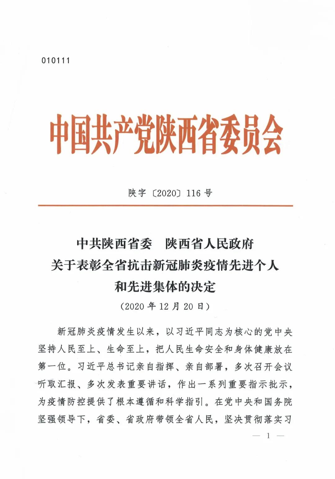 近日,中共陜西省委、陜西省人民政府印發(fā)《關(guān)于表彰全省抗擊新冠肺炎疫情先進個人和先進集體的決定》。西安國際醫(yī)學(xué)中心醫(yī)院援鄂醫(yī)療隊榮獲陜西省抗擊新冠肺炎疫情先進集體;心臟病醫(yī)院院長王海昌、胸科醫(yī)院呼吸內(nèi)科二病區(qū)主任韓新鵬、發(fā)熱門診護士長陳麗榮獲陜西省抗擊新冠肺炎疫情先進個人。