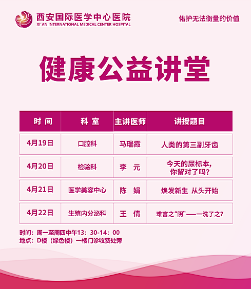 西安國際醫(yī)學中心醫(yī)院—青年醫(yī)師健康公益講堂預(yù)告