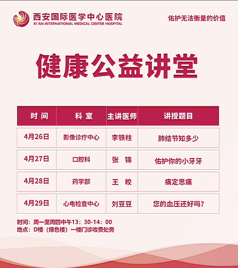 西安國(guó)際醫(yī)學(xué)中心醫(yī)院—青年醫(yī)師健康公益講堂預(yù)告
