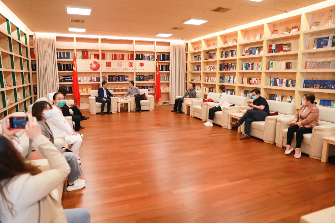 5月16日,中國醫(yī)院協(xié)會民營醫(yī)院分會秘書長張國忠、中國醫(yī)院協(xié)會民營醫(yī)院分會秘書喬梓倩、可友診所創(chuàng)始人郝希純、東北國際醫(yī)院行政副院長曹玉山、河南省鹿邑真源醫(yī)院院長張紅偉一行來到西安國際醫(yī)學中心醫(yī)院參觀考察。西安國際醫(yī)學中心醫(yī)院副院長張斌、護理部主任張敏等領(lǐng)導對張國忠秘書長一行表示熱烈歡迎。