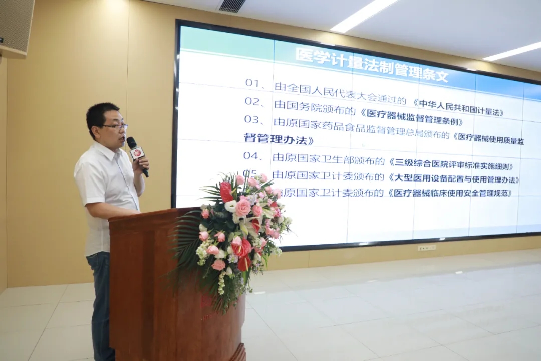 陜西省計(jì)量科學(xué)研究院高級工程師孫喜榮部長以“測量守護(hù)健康”為題,從醫(yī)學(xué)計(jì)量的意義、醫(yī)用計(jì)量器具檢定校準(zhǔn)的重要性以及如何做好醫(yī)用計(jì)量檢定校準(zhǔn)工作三個(gè)方面作了專題講座。