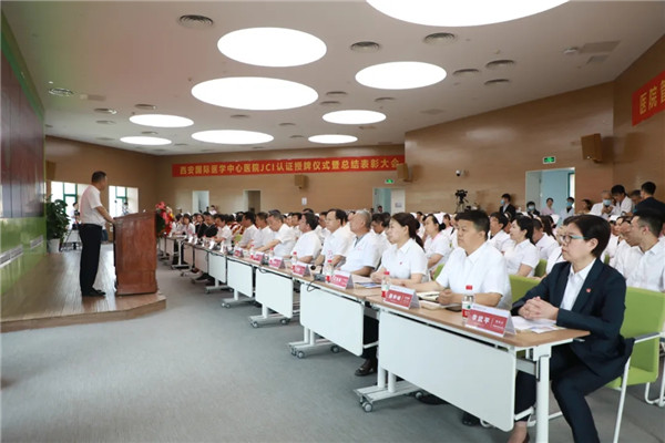 5月27日,西安國際醫(yī)學(xué)中心醫(yī)院舉行JCI認(rèn)證授牌儀式暨總結(jié)表彰大會(huì)。聯(lián)合委員會(huì)國際部總裁兼首席執(zhí)行官PaulaWilson ,聯(lián)合委員會(huì)國際部中國區(qū)主任、JCI評(píng)審(北京)有限公司副總經(jīng)理任暉,聯(lián)合委員會(huì)國際部JCI認(rèn)證組組長孔雅雀,華潤JCI研究院執(zhí)行院長酈忠,西安國際醫(yī)學(xué)投資股份有限公司總裁劉瑞軒、副董事長王愛萍、副總裁孫文國、副總裁王杲、孫義寬,西安國際醫(yī)學(xué)中心醫(yī)院院長尹強(qiáng)、總經(jīng)理王志峰等領(lǐng)導(dǎo),各專科醫(yī)院院長、主任、護(hù)士長以及職工代表參加。