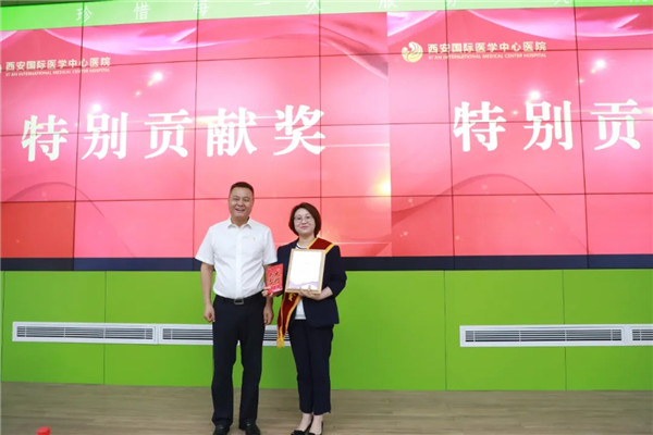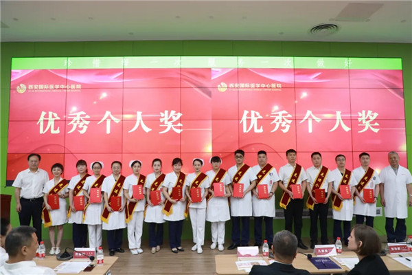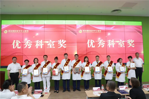 國際醫(yī)學(xué)集團(tuán)領(lǐng)導(dǎo)、西安國際醫(yī)學(xué)中心醫(yī)院領(lǐng)導(dǎo)分別為特別貢獻(xiàn)獎(jiǎng)、優(yōu)秀部門獎(jiǎng)、優(yōu)秀科室獎(jiǎng)、優(yōu)秀個(gè)人獎(jiǎng)的獲獎(jiǎng)集體及個(gè)人頒獎(jiǎng)。