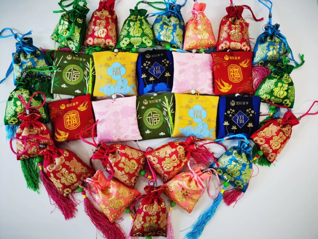 西安國際醫學中心醫院中藥房為您準備了端午香囊,內含蒼術、白芷、冰片、藿香和艾葉等多種香藥,有辟穢、燥濕、醒神的功效。這款端午香囊富涵植物藥香,甘涼舒適,濃郁不膩。可以佩戴于身上,或者懸掛車內、房間、背包等處使用。
