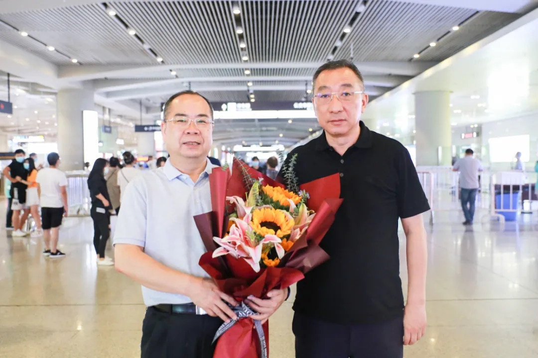 西安國際醫學中心醫院院長尹強迎接剛剛載譽歸來的吳昌歸教授,并致以崇高的敬意。