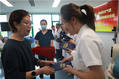在結業典禮上,李武平院長頒發培訓證書,對結業學員表示祝賀;對來自支氣管鏡檢查室、培訓中心兼職教師谷志彬教授的專業素養與辛苦付出表示贊揚;對康福霞主任帶領下的培訓中心工作團隊給予高度肯定。同時李院長指出:“每一段看似結束的培訓旅程、都應是每位學員職業生涯新的開始。國際醫學培訓中心作為醫生的“圖書館”,應當時刻了解臨床所需,充分利用各種高端模擬設備,建立完善的課程體系,助力更多臨床醫生時刻充電;學員應當積極參加并珍惜每一次培訓機會,豐滿自己羽翼。”