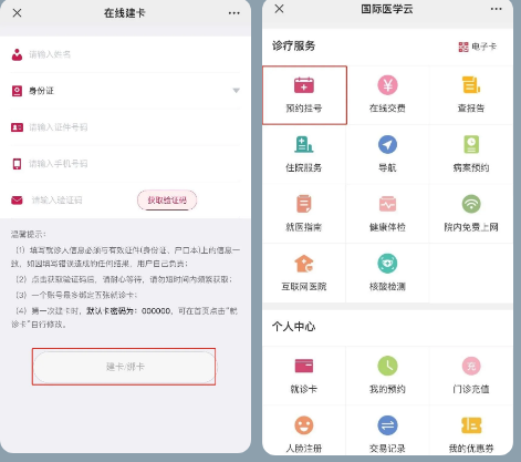 3、輸入個(gè)人信息完成就診卡綁定。綁卡后,點(diǎn)擊【預(yù)約掛號(hào)】