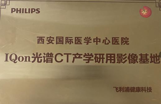 基于前期飛利浦公司與西安國際醫學中心醫院的良好合作,為了進一步推動光譜CT的臨床應用、科研及轉化,飛利浦大中華區非公醫療吳訪宏總經理代表飛利浦公司授予西安國際醫學中心醫院“IQon光譜CT產學研用影像基地”。