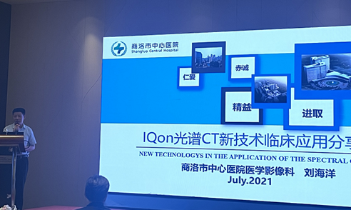 商洛市中心醫院CT室主任劉海洋教授分享“IQon光譜CT 新技術臨床應用分享,闡述了多參數平臺以及光譜臨床化的應用,即提升隱匿性病灶檢出、腫瘤分期、血管支架再狹窄評估、腦卒中的早期診斷、降低圖像偽影等方面。