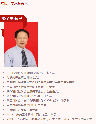 西安國(guó)際醫(yī)學(xué)中心醫(yī)院血液病院,成立于2019年,是一家集醫(yī)療、教學(xué)、科研為一體的綜合性專科醫(yī)院,擁有達(dá)到國(guó)家標(biāo)準(zhǔn)的外周造血干細(xì)胞/骨髓移植醫(yī)學(xué)中心。骨髓移植中心設(shè)有24張百級(jí)凈化層流倉(cāng)、移植相關(guān)的醫(yī)療設(shè)備、病毒檢測(cè)技術(shù)及移植患者病情24小時(shí)監(jiān)測(cè)系統(tǒng)。