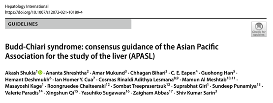近日,亞太肝病學會撰寫的2021年亞太布加綜合征共識指南在Hepatology International(2021 Jun;15(3):531-567.)發表,參加撰寫的作者分別來自印度、中國、日本、新加披、尼泊爾、菲律賓、印度尼西亞、孟加拉國、泰國、巴基斯坦。作為中國僅有的兩名作者之一,韓國宏教授主要負責編撰布加綜合征的治療策略,而另一位中國作者也曾是師從韓教授的祁興順教授。