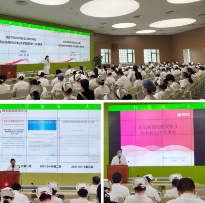 當日下午,感控部、檢驗中心對新冠肺炎感染防控及核酸采樣技術進行了全員培訓,詳細解讀了《醫療機構內新型冠狀病毒感染防控與控制技術指南(第三版)》、等級醫院評審手衛生指標要求、核酸采樣技術及標本轉運注意事項。