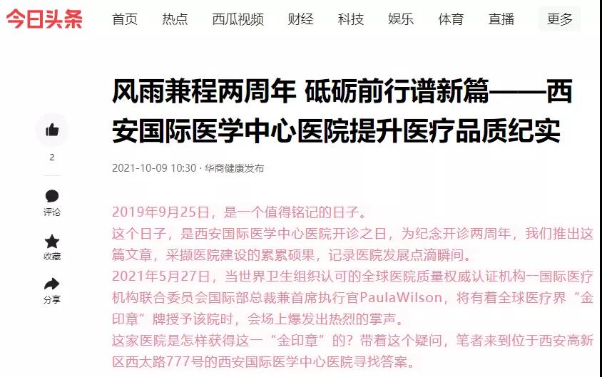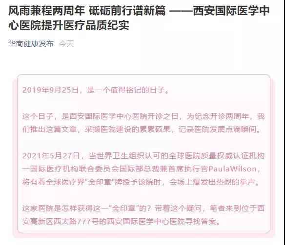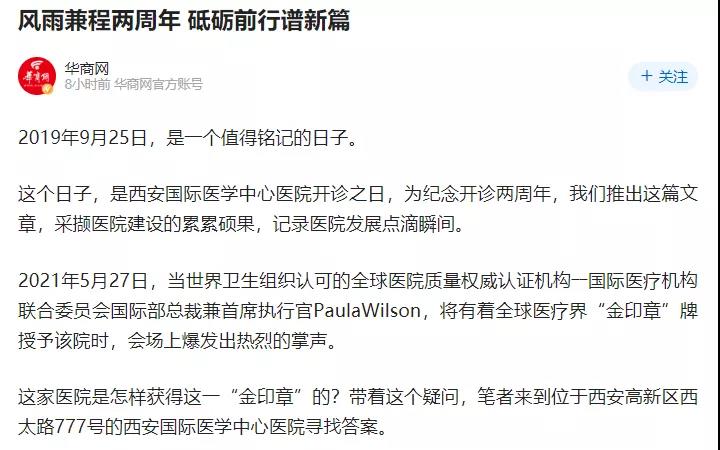 2019年9月25日,是一個值得銘記的日子。這個日子,是醫(yī)院開診之日。兩年來,西安國際醫(yī)學(xué)中心醫(yī)院獲得了社會公眾及媒體的高度關(guān)注。