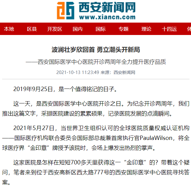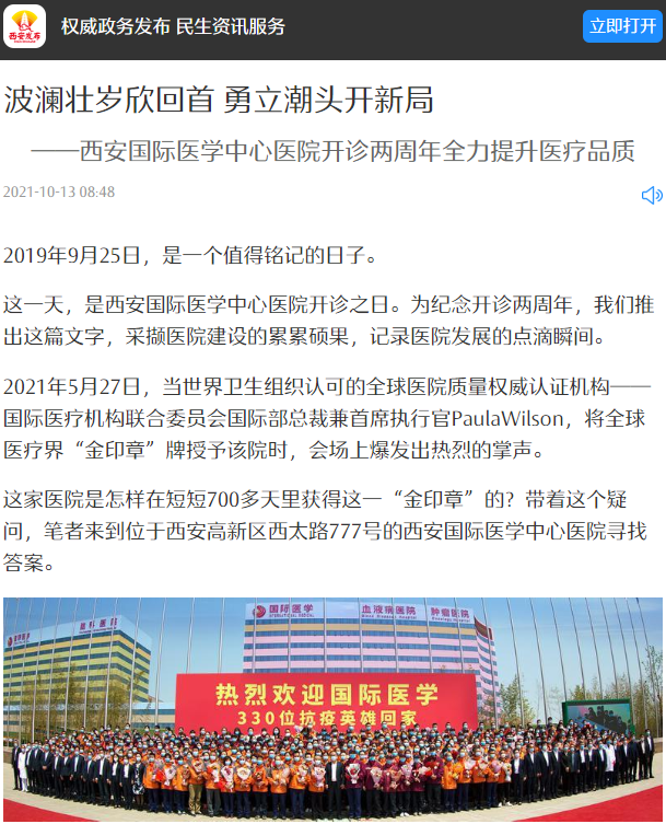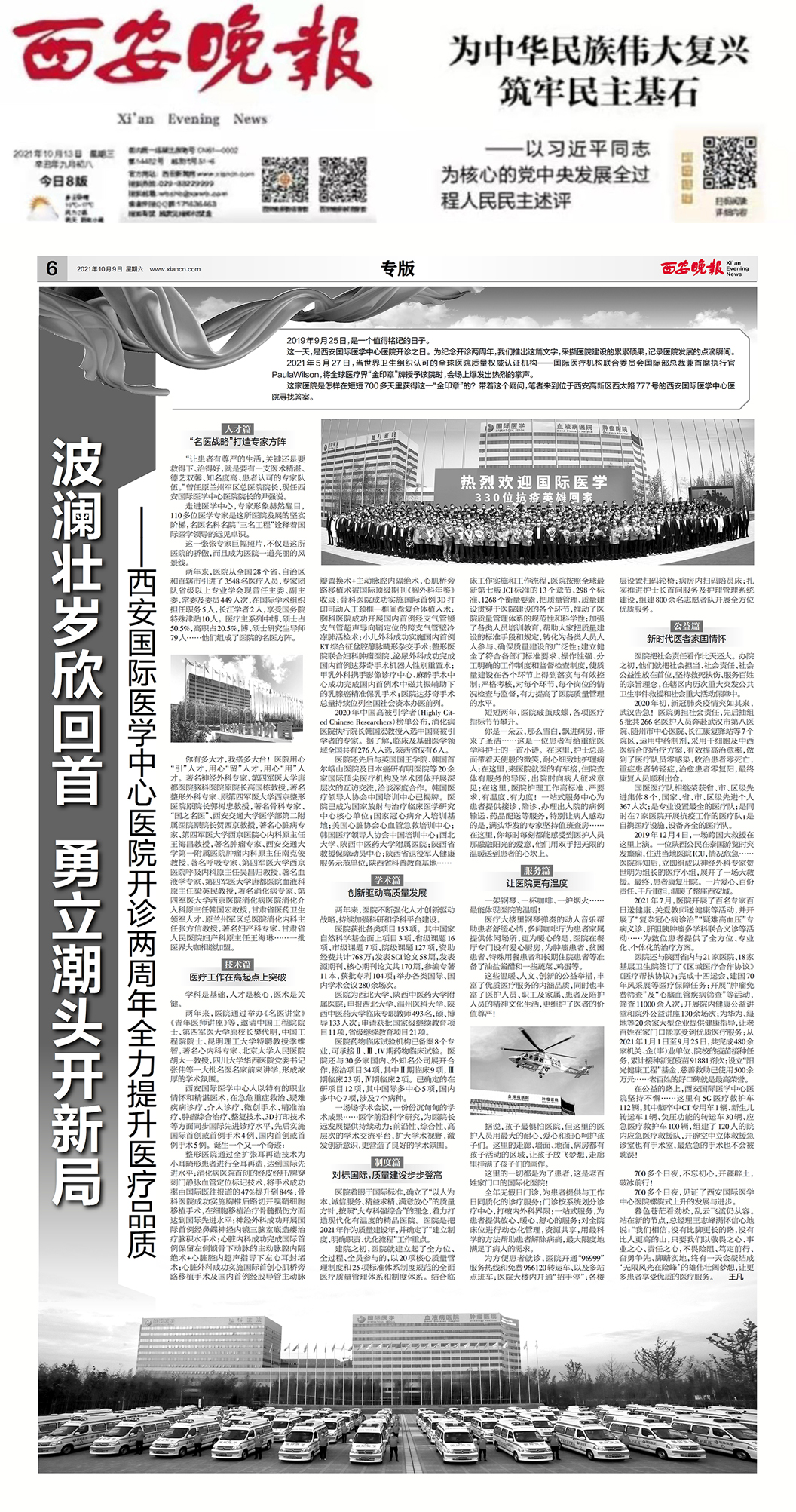 編者按:今日,《西安晚報(bào)》A8版用整版刊登了《波瀾壯歲欣回首 勇立潮頭開(kāi)新局——西安國(guó)際醫(yī)學(xué)中心醫(yī)院提升醫(yī)療品質(zhì)紀(jì)實(shí)》,以圖文并茂的形式記錄了醫(yī)院發(fā)展的點(diǎn)滴瞬間,展現(xiàn)了西安國(guó)際醫(yī)學(xué)中心人一路向前的奮斗豪情。