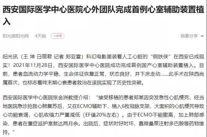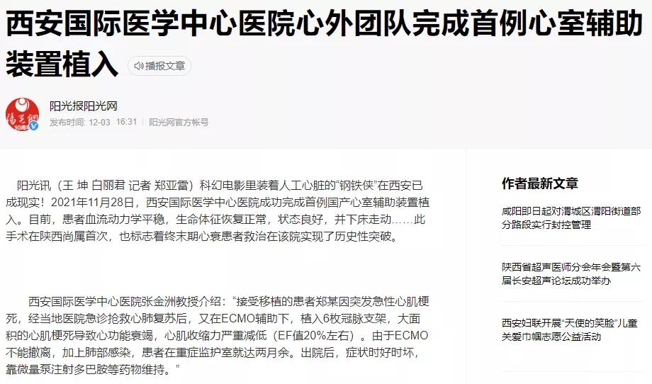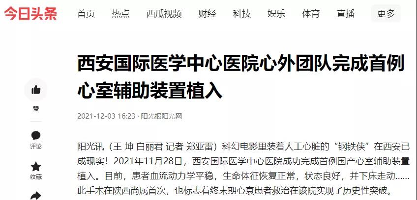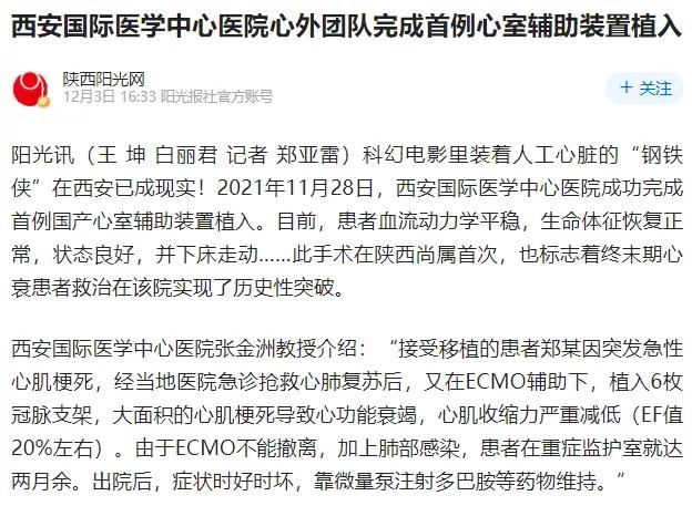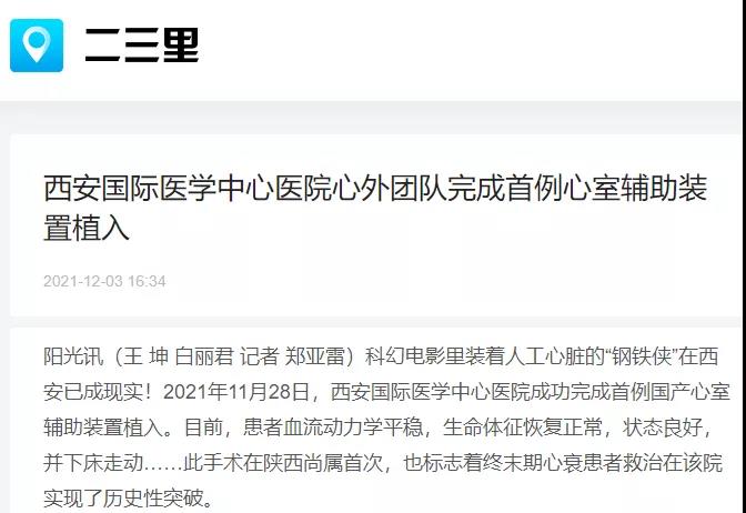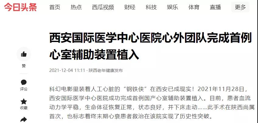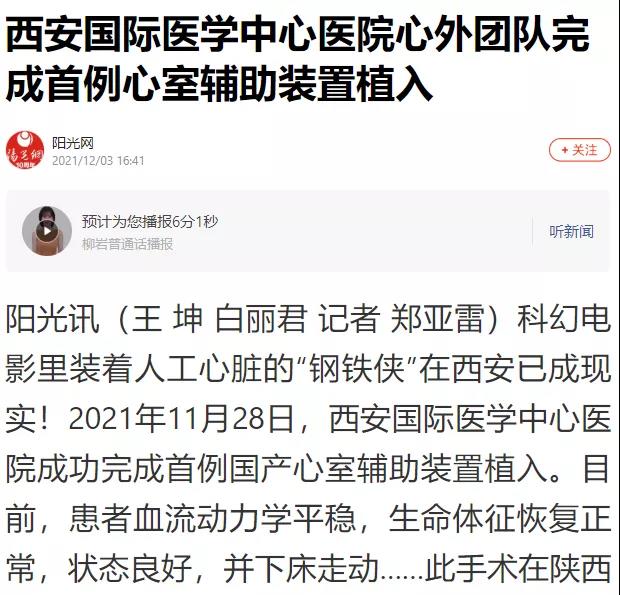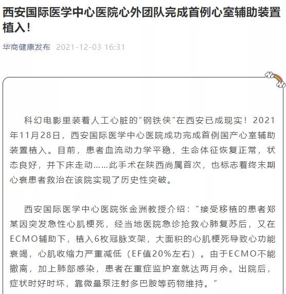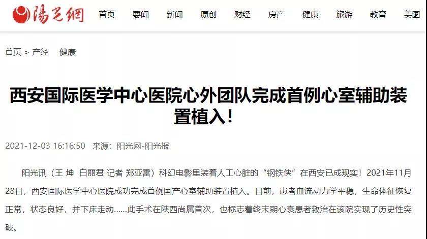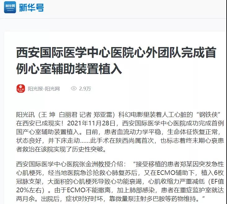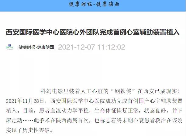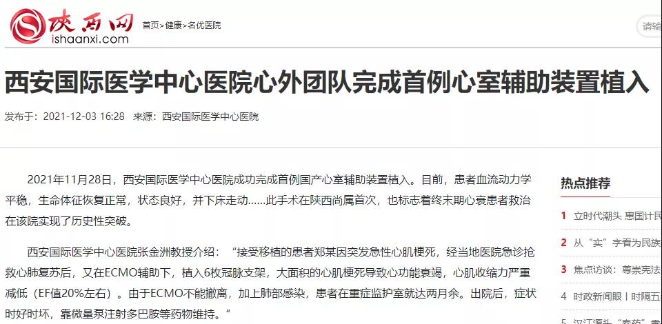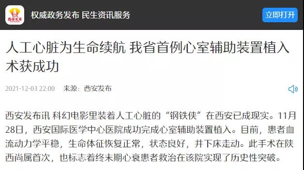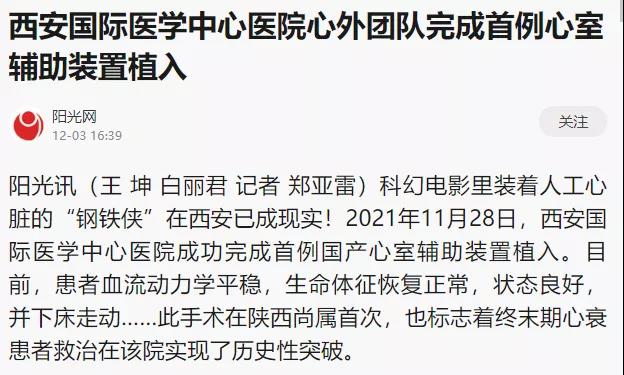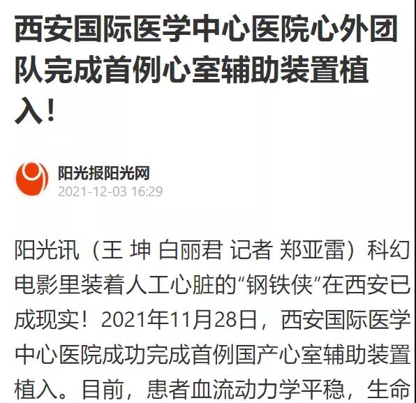 西安國(guó)際醫(yī)學(xué)中心醫(yī)院心外團(tuán)隊(duì)完成首例心室輔助裝置植入!